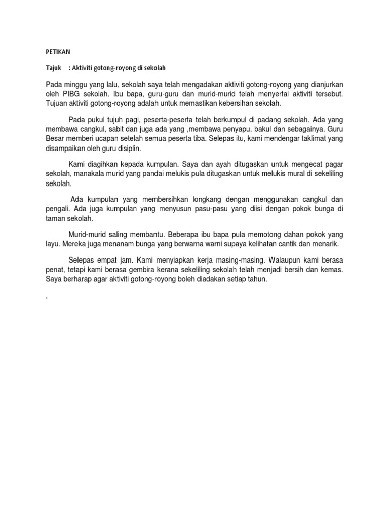 Karangan Aktiviti Gotong Royong Pdf